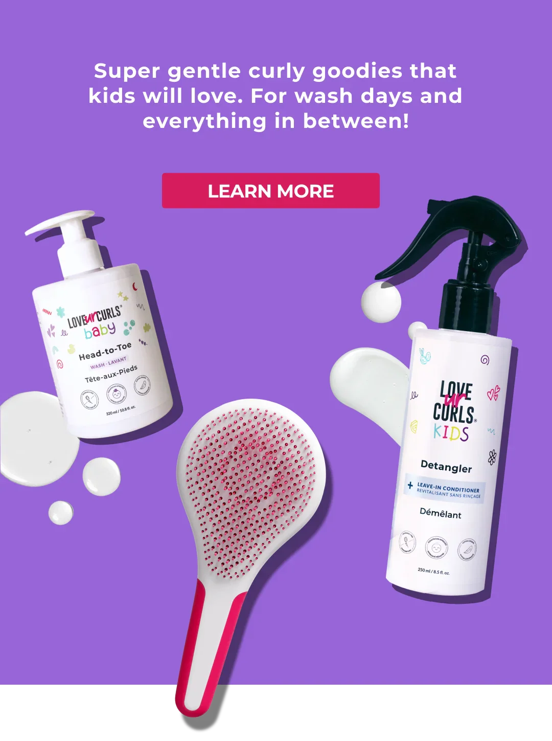 We're on a mission to make caring for your little ones' curls easier, to give every curly-haired kid confidence from early on. No more tears, no more stress —just super gentle and effective curl products, inspired by our proven parent formulas.