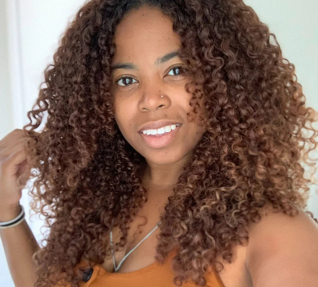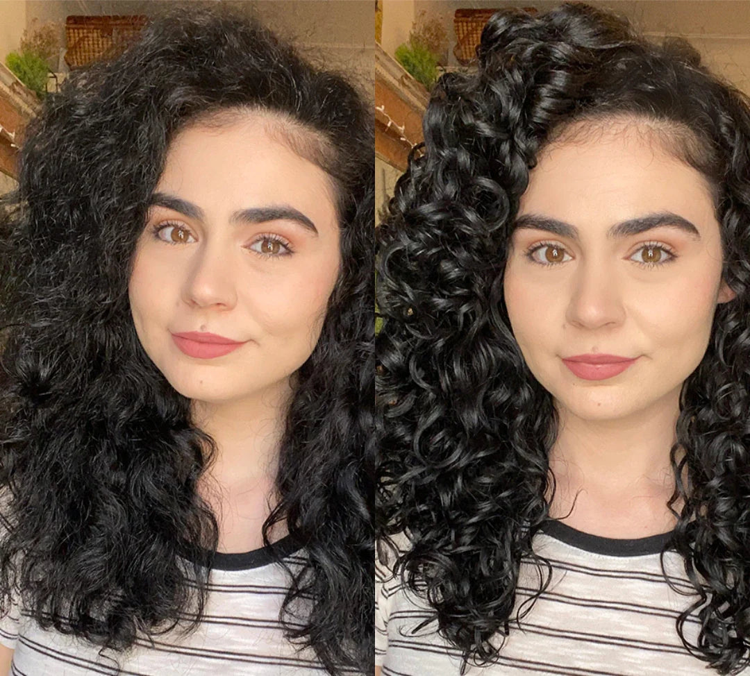 Tighter and more defined, curly hair forms in spirals or ringlets that range in size, from loose loops to tighter corkscrews. This curl type often experiences more dryness and frizz, so it thrives with added moisture and definition.