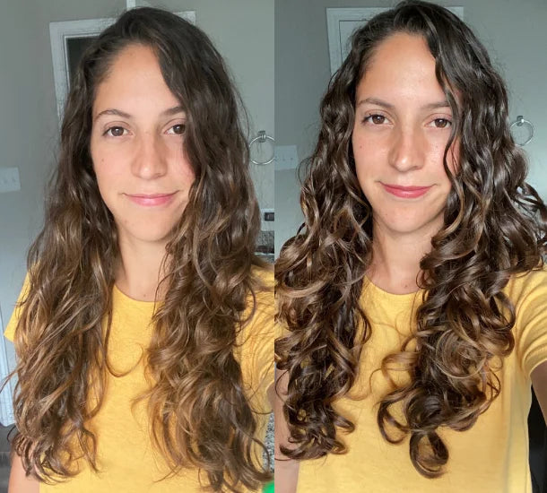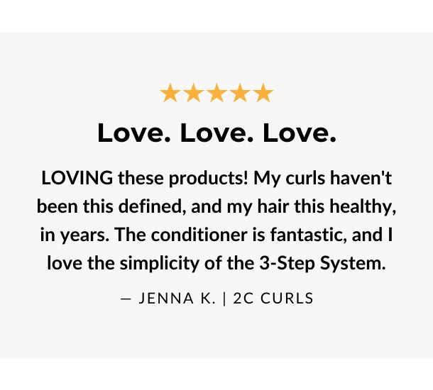 Tighter and more defined, curly hair forms in spirals or ringlets that range in size, from loose loops to tighter corkscrews. This curl type often experiences more dryness and frizz, so it thrives with added moisture and definition.