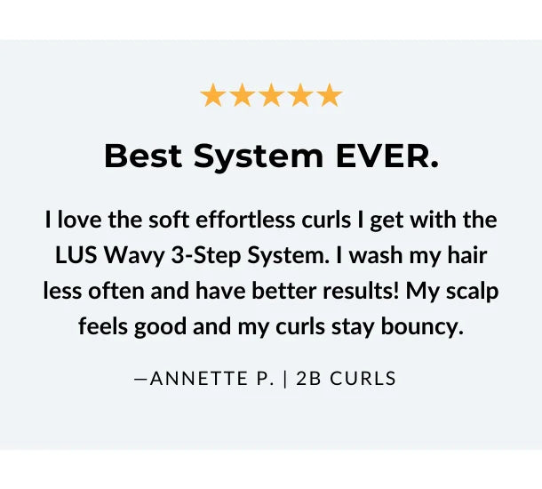 The loosest of all curl types, wavy hair forms soft bends that typically create an ‘S’ shape. While it’s usually less prone to dryness than curlier types, waves still benefit from lightweight moisture and frizz control.