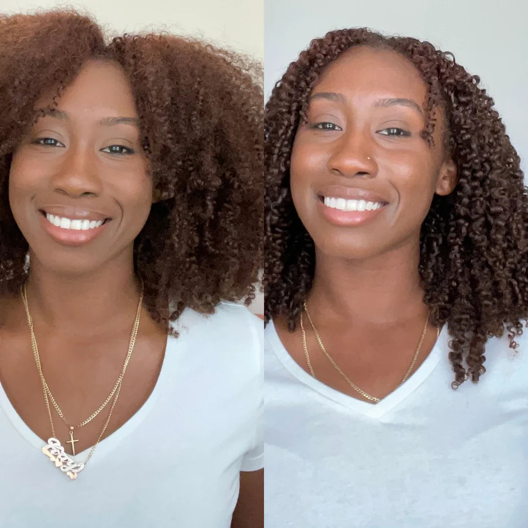 Tighter and more defined, curly hair forms in spirals or ringlets that range in size, from loose loops to tighter corkscrews. This curl type often experiences more dryness and frizz, so it thrives with added moisture and definition.