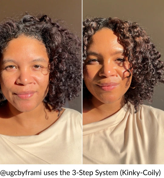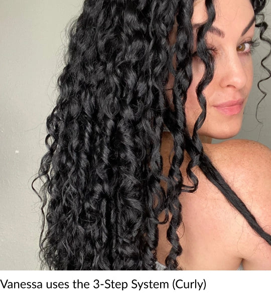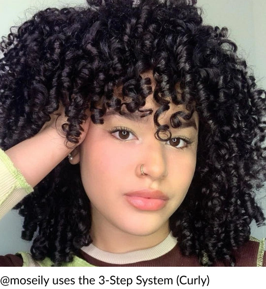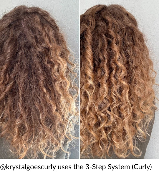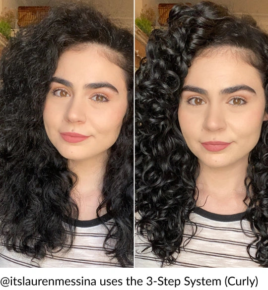 Tighter and more defined, curly hair forms in spirals or ringlets that range in size, from loose loops to tighter corkscrews. This curl type often experiences more dryness and frizz, so it thrives with added moisture and definition.