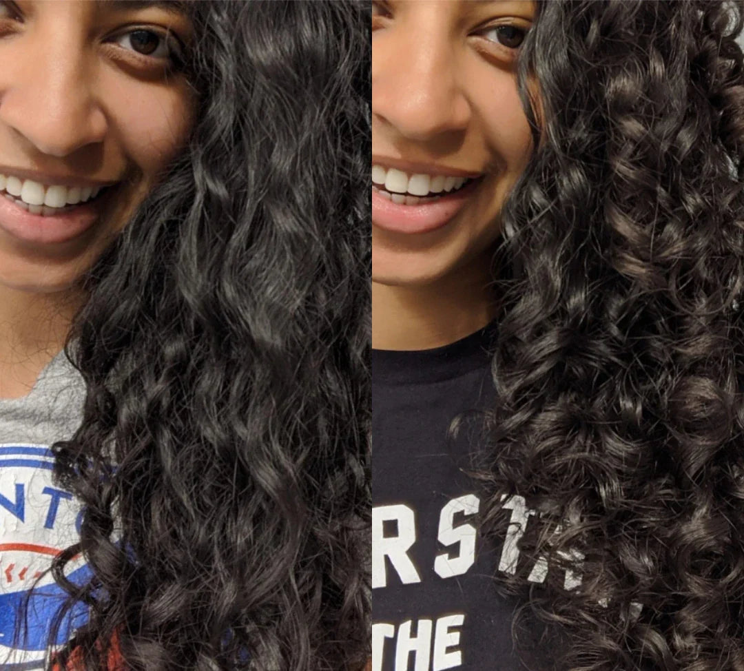 Tighter and more defined, curly hair forms in spirals or ringlets that range in size, from loose loops to tighter corkscrews. This curl type often experiences more dryness and frizz, so it thrives with added moisture and definition.